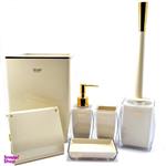 اکسسوری و ست سرویس بهداشتی مدل پاریس آذین ست/ رنگ کرم صدفی با طلایی / جنس رزین درجه یک