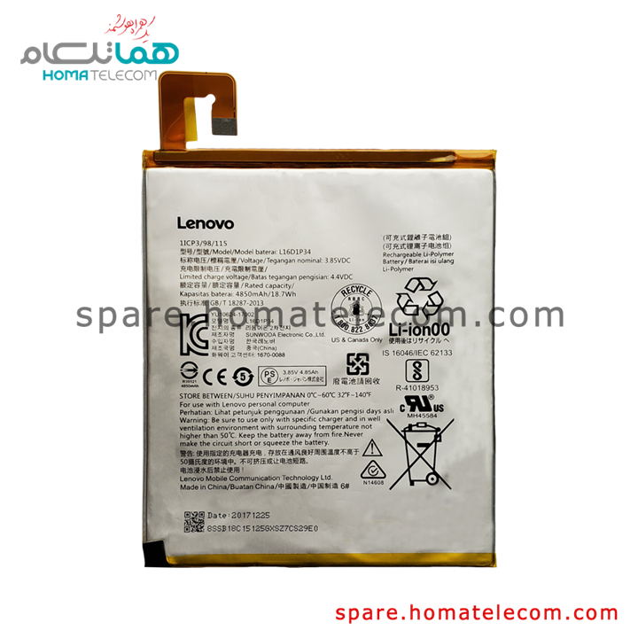 مشخصات فنی باتری تبلت مدل L16D1P34 ظرفیت 4850 میلی آمپر ساعت مناسب برای تبلت لنوو tab4 8
