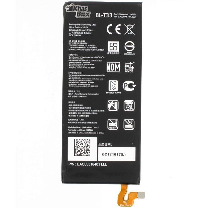 مشخصات فنی باتری موبایل ال جی مدل BL-T33 با ظرفیت 3000 میلی آمپر ساعت مناسب برای گوشی موبایل LG Q6