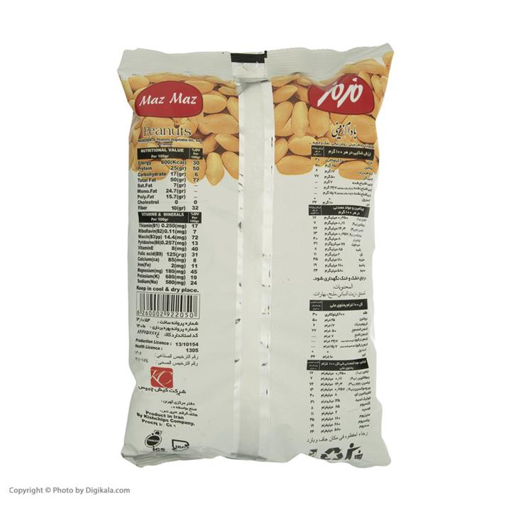 مشخصات فنی بادام زمینی مزمز مقدار 400 گرم