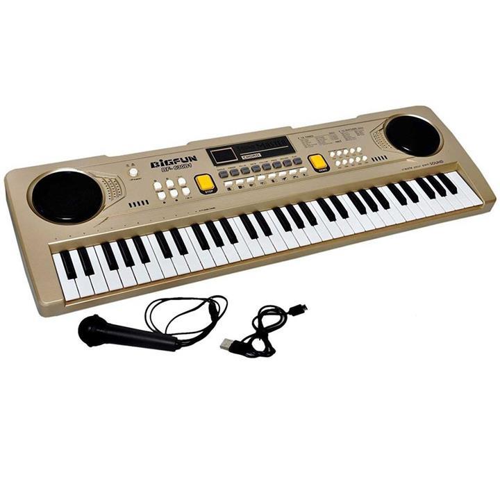 16 صدای سازهای ضبط شده در حافظه و 5 ریتم دارای باتری کابل USB برای اتصال MP3 و کامپیوتر 61 کلید سیستم تنظیم درجه صدا