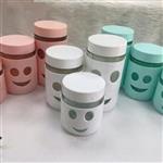 بانکه لبخند شیشه ای سه تایی در رنگ های متنوع.ارتفاع 10 و 13 و 15 س