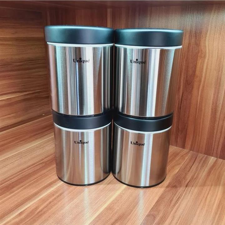 بانکه 4 عددی تمام استیل یونیک سایز 1/8 لیتر کد 4460 ، سطل قند و شکر ، سطل برنج