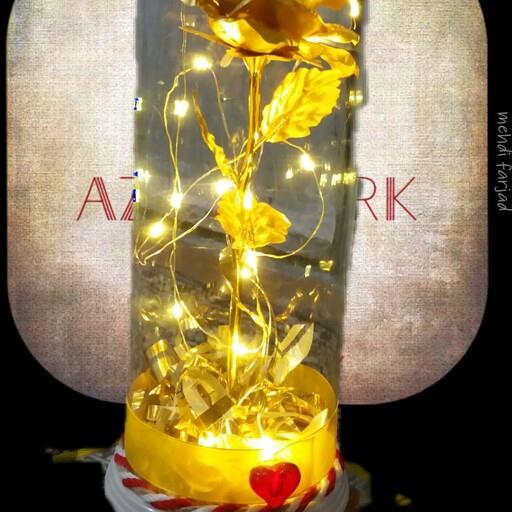 باکس شیشه ای گل رز طلایی سفارشی چراغ خواب بدون نیاز به باتری usb خور