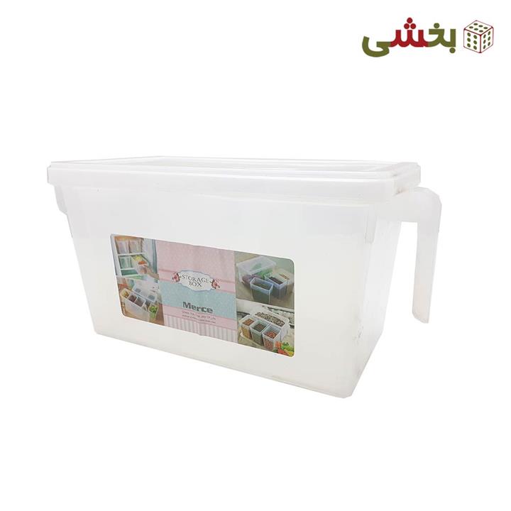 باکس دسته دار و درب دار \r\nقابلیت تازه نگهداشتن مواد غذایی و جلوگیری از بو گرفتن آنها\r\nمنظم کننده فضای یخچال،کابینت،و انواع قفسه ها\r\nدارای یک دسته برای سهولت در جابه جایی\r\nمحصولی بسار پر کاربرد\r\nساخته شده از مواد کاملا بهداشتی\r\n\r\n