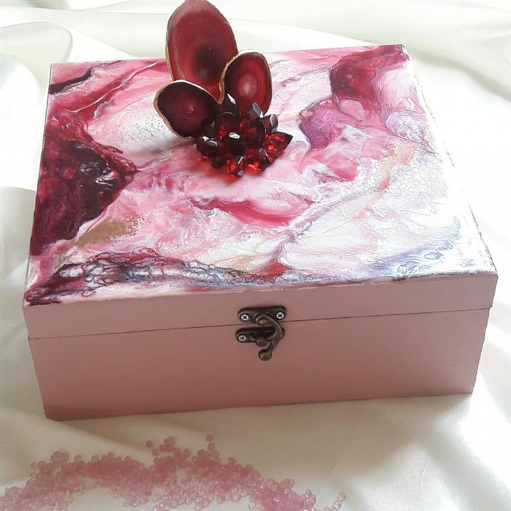 باکس چوبی رزینی سایز 25×25\nمناسب چای و دمنوش و آرایشی و اکسسوری ها و زیور آلات