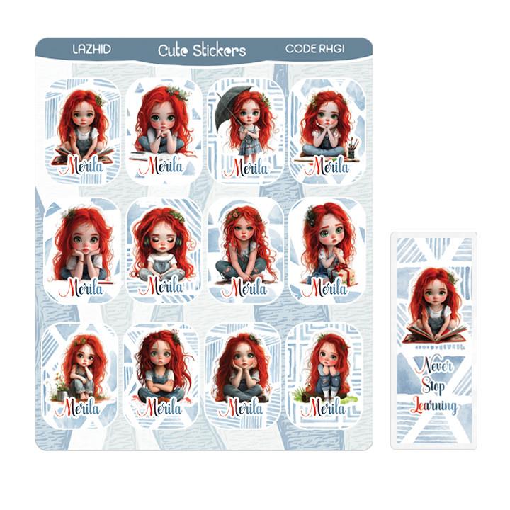 برچسب لاژید مدل اسم مریلا طرح کارتونی به همراه نشانگر کتاب
