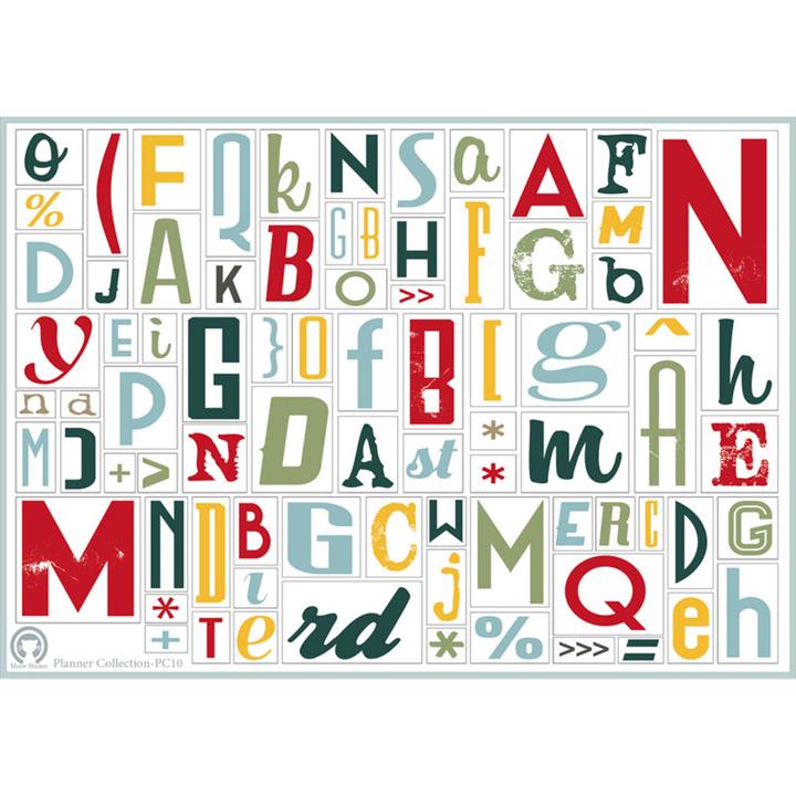 مشخصات فنی برچسب میو استیکر طرح اسکرپ بوک و بولت ژورنال مدل حروف کد PC10 -