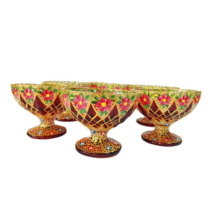 بستنی خوری شیشه ای مدل گلدار بسته 6 عددی