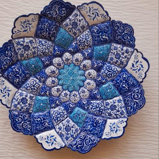 بشقاب 25 سانتی مینا کاری روی مس فیروزه ای ولاجورد