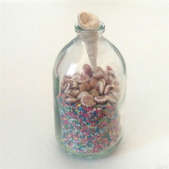 بطری دکوری حاوی سنگ رنگی صدف گوش ماهی