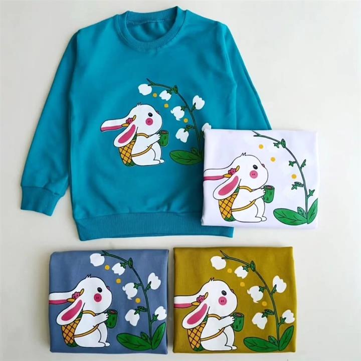 بلوز تک دخترانه اقتصادی طرح خرگوش آستین بلند جنس دورس پنبه درجه 1
