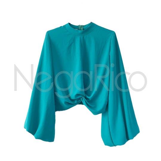 بلوز زنانه مجلسی آستین پفی طرح گرهی