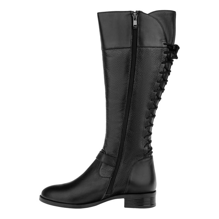 بوت بلند زنانه چرمی مشکی مدل پاشنه تخت کد 1010