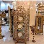 ویترین برنزی سه طبقه تاج دار و ظریف کاری شده