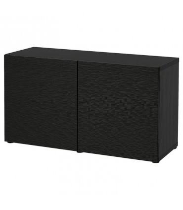 بوفه 2 درب ایکیا مدل Laxviken با درب Laxviken عرض 120 سانتیمتر رنگ قهوه ای تیره طرح چوب/مشکی برجسته