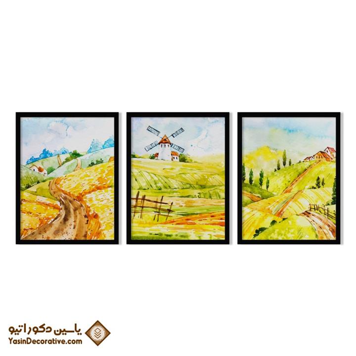 تابلو دکوراتیو طرح نقاشی آبرنگ منظره روستایی
