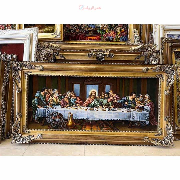 تابلو فرش دستبافت شام آخر چله ابریشم پر از ابریشم 50رج، با کیفیت بالا، با قاب نفیس