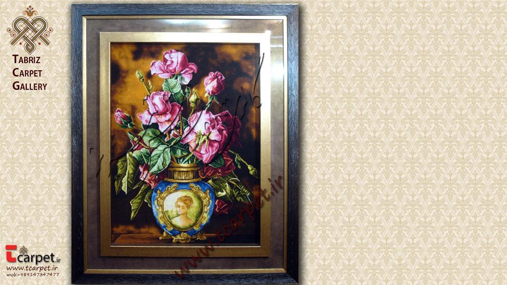 تابلو فرش دستبافت طرح گل و گلدان