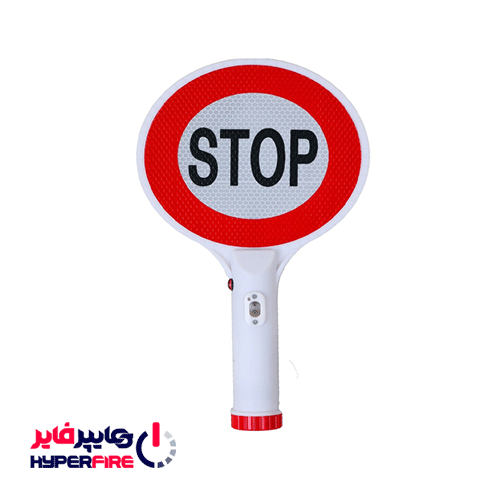 تابلو ایست سه کاره چراغدار شارژی مدل وایکینگ، دارای چراغ قرمز چشمک زن، چراغ قرمز با نور ثابت، مناسب برای استفاده در شب ها، دارای چراغ قوه، دارای بند