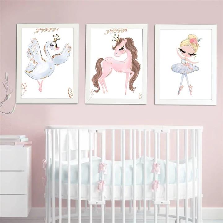 تابلو کودک مدل قو و اسب و دختر بالرین مجموعه 3 عددی
