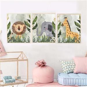تابلو کودک و نوزاد مدل حیوانات طرح شیر و زرافه و فیل کد 46 مجموعه 3 عددی