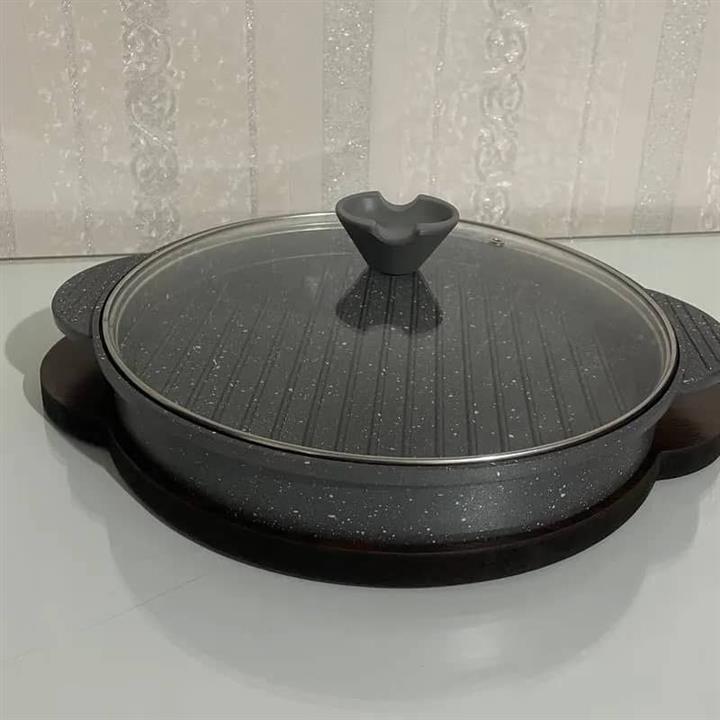 تابه ای دو طرفه (یک سمت صاف و یک سمت شیار دار"گریل" که برای کبابی کردن یا پخت انواع گوشت و سبزیجات حتی بدون روغن کاربرد دارد)