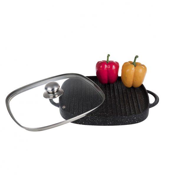 تابه گریل چدن دو طرفه مدل Lorenza درب شیشه ای