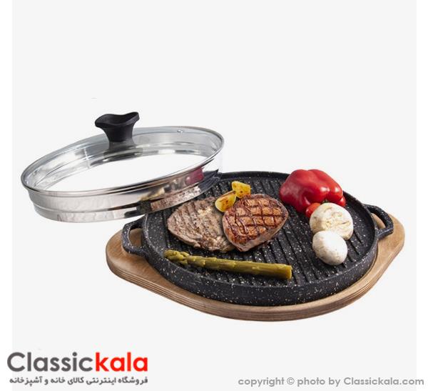 تابه گریل چدنی یونیک درب دار 27 سانتیمتری (سینی چوبی) UN-600...