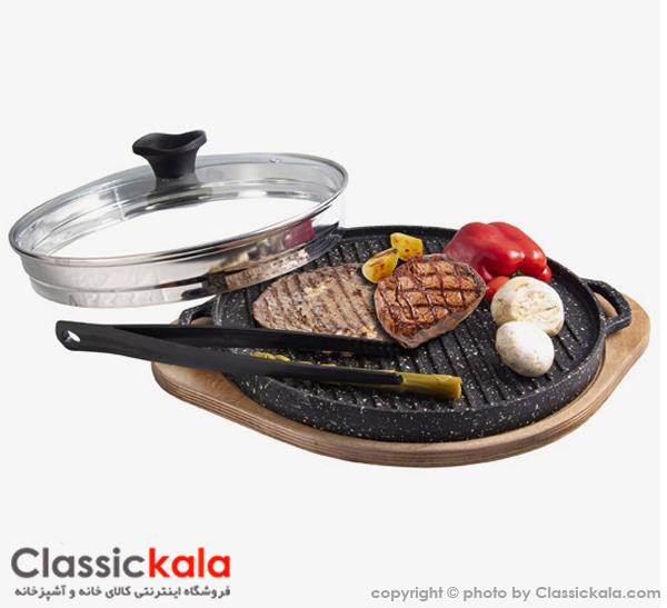 تابه گریل چدن گرد بزرگ باچوبUN-6001