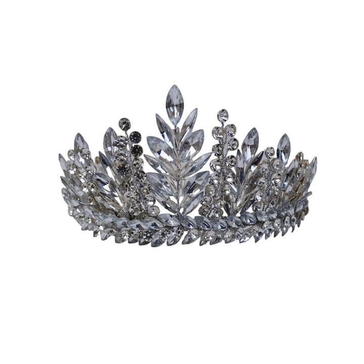 تاج عروس ایستاده مدل پرنسا که با نگین های سنگی و مارکیز های شیشه ای کار شده است و روی سر خیلی شلوغ و درشت نیست روی سر ظریف است و عالی دیده میشود . جلوه خیلی خاصی به موهاتون میدهد