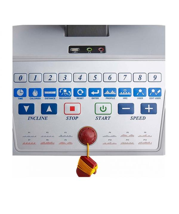شیب برقی با موتور مجزا تا 12% درجه بصورت اتومات دارای ضربه گیر کف قابلیت اندازه گیری BMI و BMR بدن (حالت تناسب اندام و مقدار کالری مصرف روزانه) دارای پنل کامل تنظیم Program، Start، Stop بر روی دسته