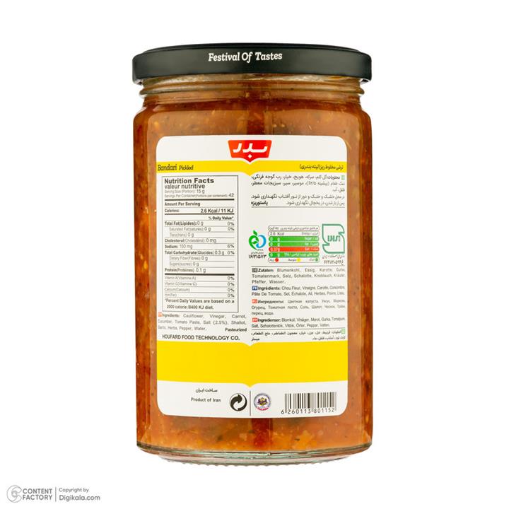 مشخصات فنی ترشی بندری بدر - 630 گرم