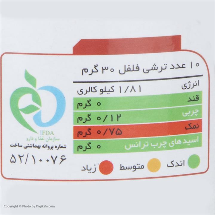 ارزش غذایی در هر ۱۰ عدد ترشی (۳۰ گرم):