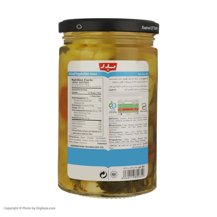مشخصات فنی ترشی مخلوط بدر - 630 گرم