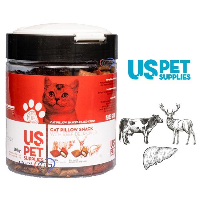 تشویقی گربه مغزدار طعم گوشت گوساله و گوشت گوزن و جگر یو اس پت 200 گرم
