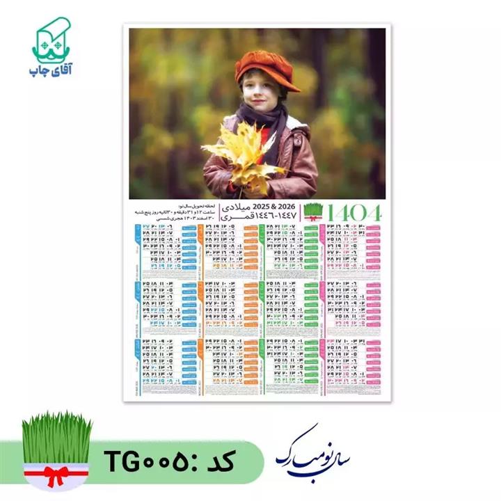 تقویم دیواری با عکس دلخواه سایز A3 کاغذ گلاسه گرم بالا کد TG005