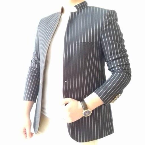 کت تک مردانه مدل (6) (سایز 44 و 50 و 52) (رنگ زغالی راه راه سفید)
