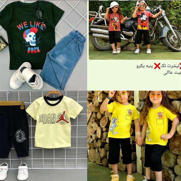 تیشرت تک سایز 40-45-50ست خواهر برادری رنگ صورتی کالباسی پررنگ