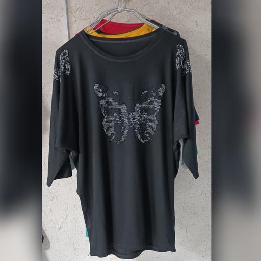 تی شرت نگین کاری طرح پروانه فری سایز 40 الی 46 جنس ویسکوز صد...