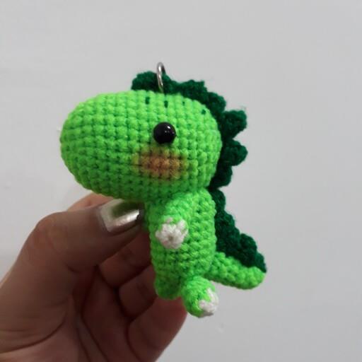 عروسک دایناسور سبز لپ گلی بافت عروسک بافتنی مناسب سرکلیدی آو...