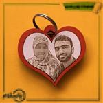 سر کلیدی چوبی قلبی دو رو با حک چهره نوشته