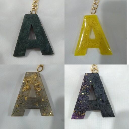 جاسوییچی و جاکلیدی حرف A همراه حلقه و اتصالات و قابل استفاده برای آویز ماشین و آویز کیف و گردنبند