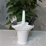 جا کارد و چنگال سرامیکی ،طرح سبدی ،رنگ سفید (ارسال کاملا رایگان)