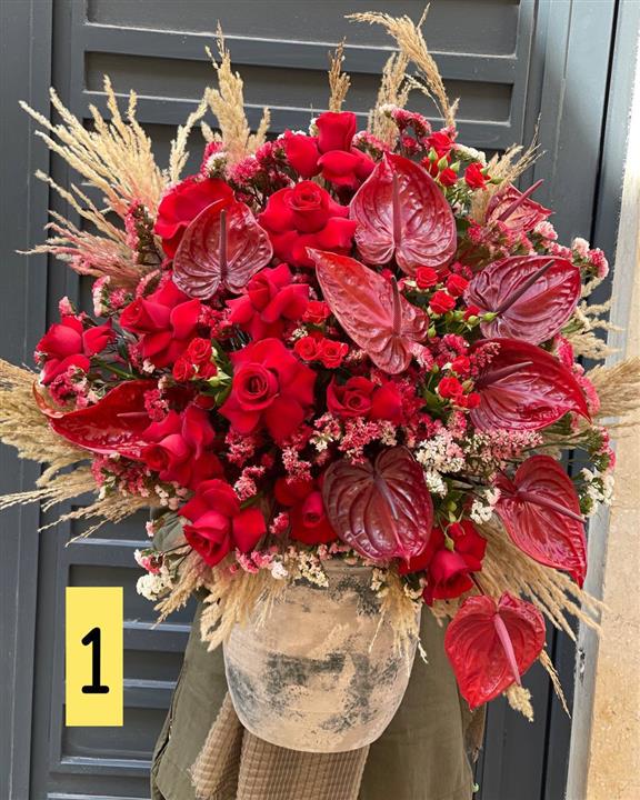 جام گل آنتریوم قرمز و رز قرمز کد 5007