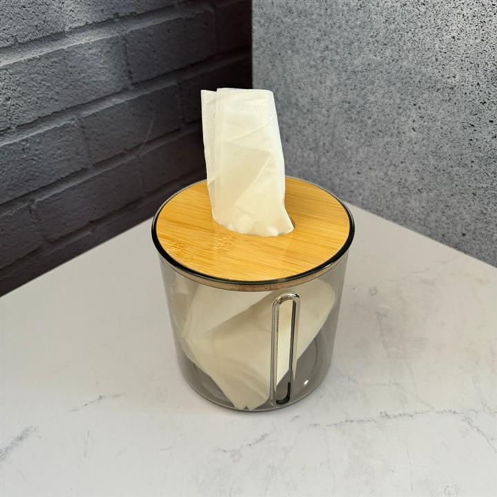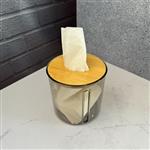جا دستمال کاغذی اکرولیک دودی درب بامبو مدل گرد