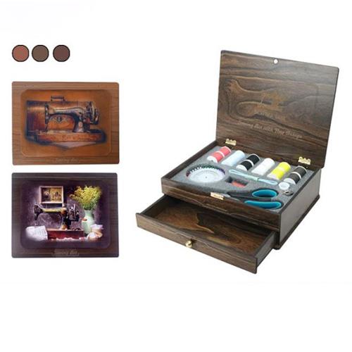 جعبه نخ و سوزن مدل هایلو طرح بدنه چوب و مخمل کد E0800