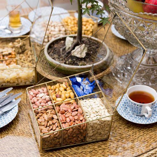 جعبه شیشه ای دمنوش دور طلایی مربع