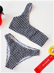 لباس شنا زنانه دو تیکه مدل یک طرفه برند شین ( shein ) طرح چهارخانه مشکی و سفید رنگ