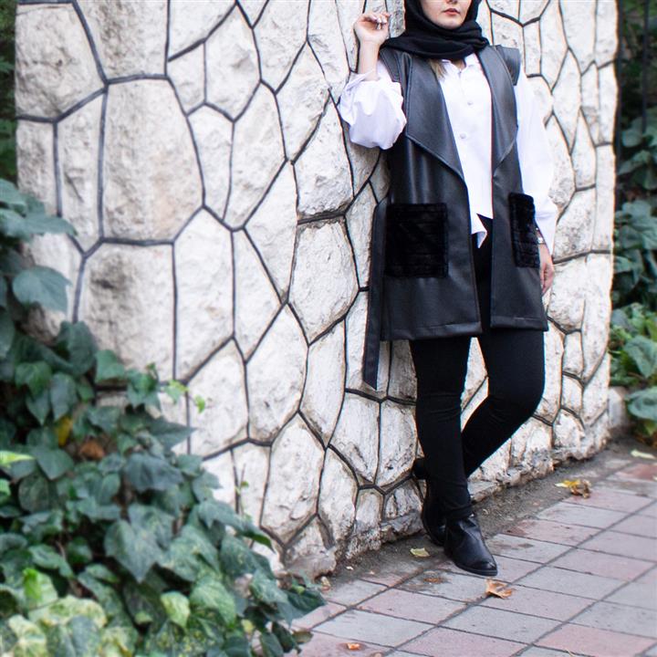 جلیقه زنانه کرپ یقه انگلیسی جیب دار کلاسیک نوژه بُرنُس
